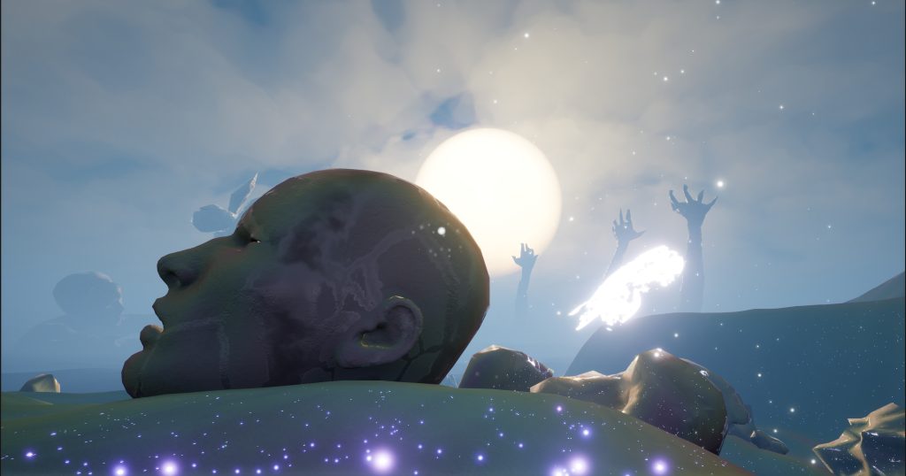 The game’s surreal, glitchy aesthetic makes for a foreboding atmosphere that combines the stillness of the void with a sense of impending catharsis as you fly around the scenery.
