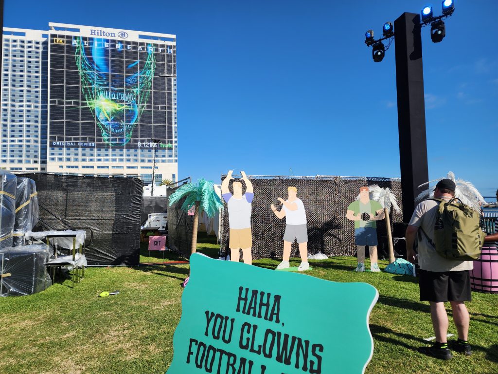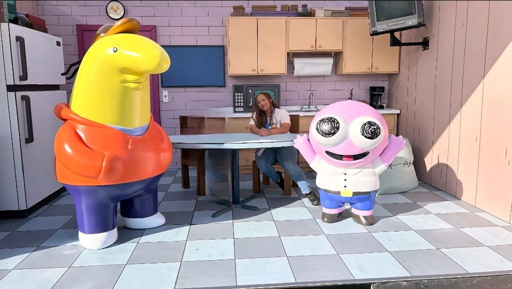 From the moment I arrived, I was greeted with a sea of inflatable madness, music playing from the main stage, and a cast of delightful workers who were great character actors (exactly the vibe Adult Swim thrives on). The first thing I had to check out was the “Smiling Friends” Break Room, a near-perfect recreation of the cartoon’s iconic set. It was surreal stepping into that world and grabbing some great pics on the set.