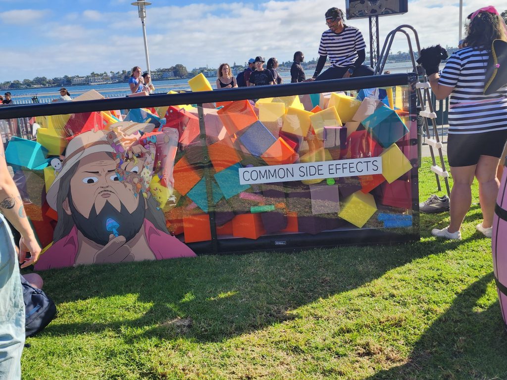 One of the more interactive surprises was the “Common Side Effects” Mushroom Hunt. It was a scavenger-style game where you had to find hidden mushrooms around a foam pit, and the reward will be an exclusive plushie.