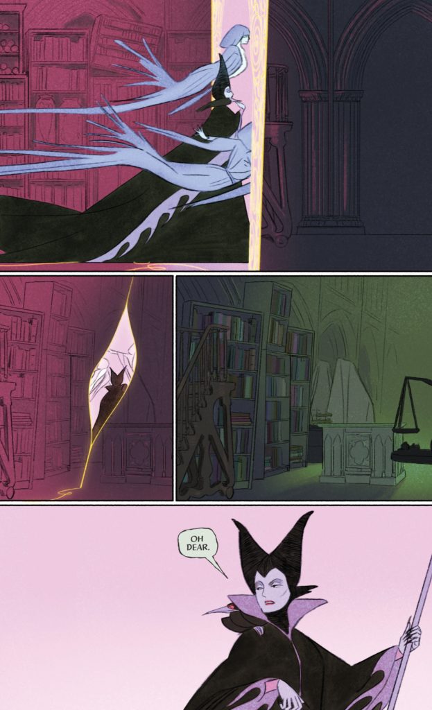 While my expectations were realistic considering this was a comic book published by Disney and was aimed at a younger audience, I have to say that I was impressed by the debut chapter. Ganucheau is all in on portraying Maleficent as the power-hungry dark sorceress she’s supposed to be. And though I know that certain heartfelt moments might arise during her current adventure, I’m okay with such instances as long as by the end of it all Maleficent stays true to her core.