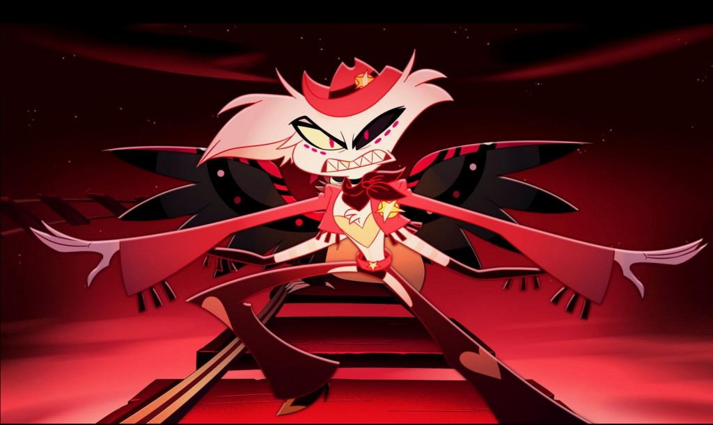 After several increasingly frustrating attempts of trying to recreate Sir Pentious’ redemption, including Angel Dust having to save Husk from a train with Vox-sabotaged brakes, Charlie finally comes to the obvious conclusion that the redemption must be tailored to the person trying to be redeemed. Vox reveals that Angel Dust murdered his implied-to-be-abusive father and is overjoyed that he and Velvette have all of the footage needed to further tarnish Charlie and the hotel’s image. Even more so, Angel Dust is rightfully angry that his trauma has been put on camera for everyone to see.