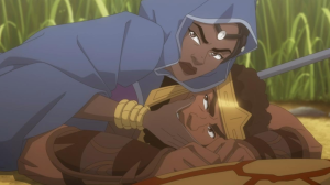 With the corrupted animals breaking down the cave’s blockade, Team Chosen puts Toye’s plan into motion and they finally escape the perilous path. Unfortunately, the sweltering desert in combination with Nuro increasing the hostility of the corrupted animals through the spread of The Fallen One’s (Lord Frank) red mist, Iyanu (Serah Johnson) must push the limits of her knowledge of her abilities to save Team Chosen. Though the full potential of Iyanu’s abilities remains a mystery, her ability to grow a mango in the desert and save the team multiple times by producing vines are exciting moments in the episode.