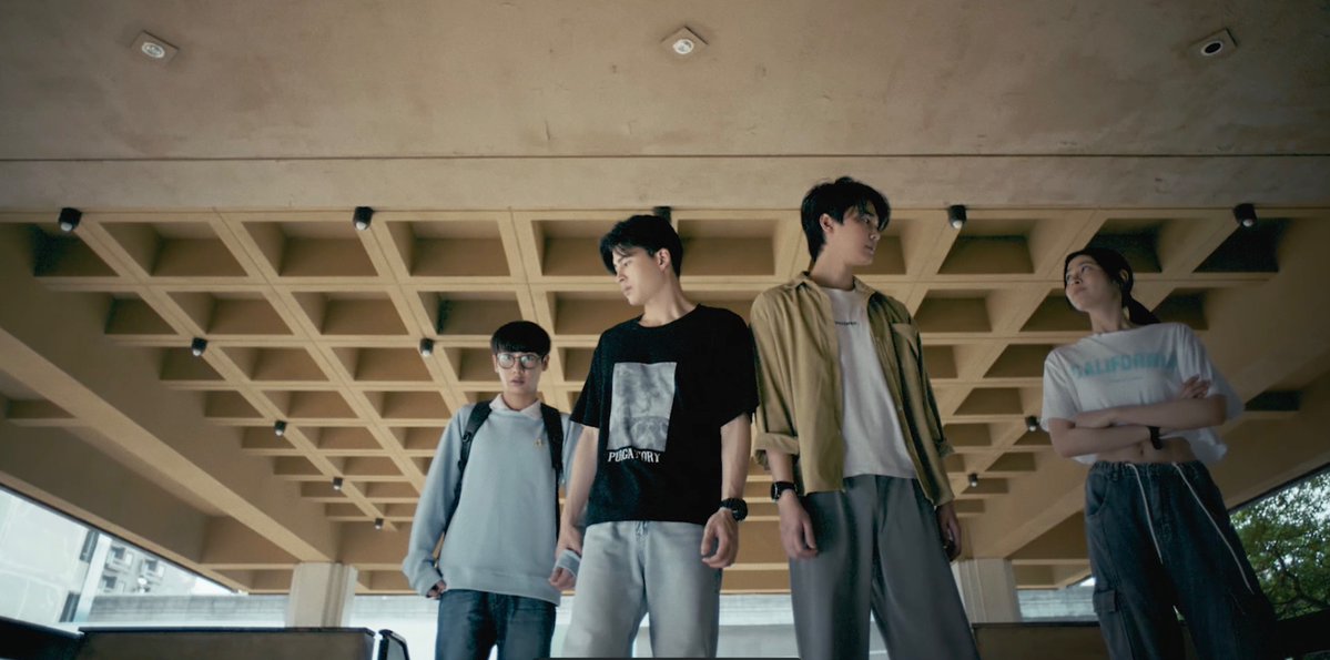 In the final scenes, we see Ozone slowly adjusting to living with Night and Dream, who take care of Ozone, as they promised Day. (I can also appreciate that Wiwat and Kit are part of their newfound family group – especially Kit, who has been alone for so long.) But Day is never far from Ozone’s thoughts, and as we see, Day is living in limbo, able to exist in the same world as Ozone even though they can’t see each other. (Also, I didn’t notice this until someone pointed it out, but Day’s shirt in the second half of the episode says “Purgatory”.)