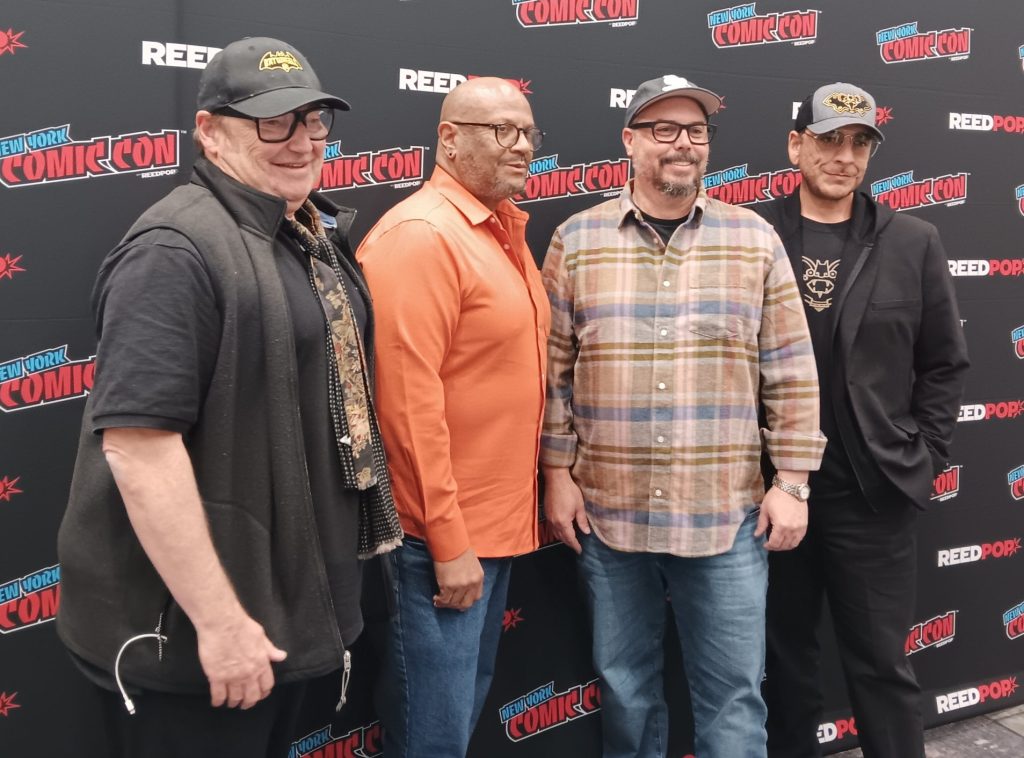 Batman: Caped Crusader showrunner and executive producer James Tucker, Aztec Batman: Clash of Empires director Juan Meza-Leon, Bat-Fam showrunner and executive producer Mike Roth, and Batwheels executive producer Simon J. Smith were all on hand in the press room to talk about Batman in animation.