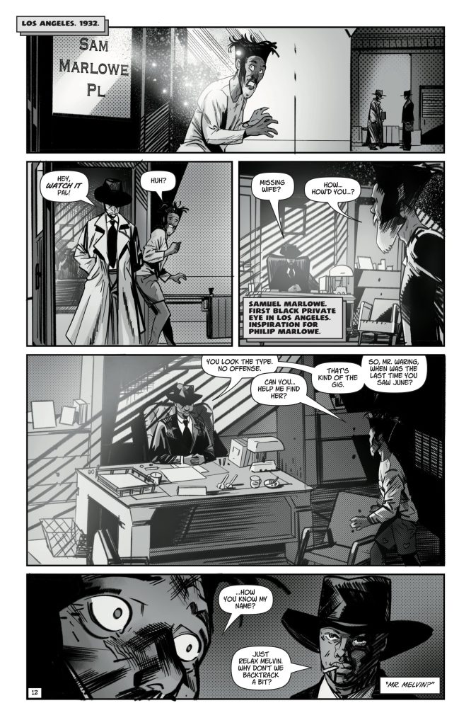 As someone who received a digital review copy of the upcoming debut issue, I skimmed through it yesterday. I do like the artstyle and the worldbuilding (Myran has a cute animatronic panda pet). It’s also nice to see a story with an older lead character. Of course, I Googled the historical figures that came to Melvin’s aid.