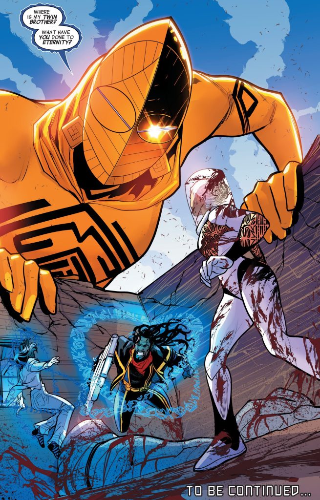 We know Storm’s going to have some choice words for Eternity when she realizes what’s happening and why she was selected as his host without her permission. Narratively, the story couldn’t have rushed through that moment. But rest assured that it’s coming now that Infinity has brought up his name.