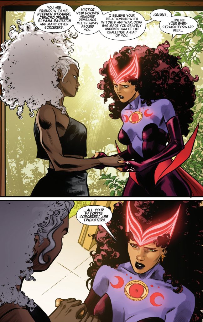 Wanda warns Ororo about magicians in Storm Earth’s Mightiest Mutant Issue 2 (Image via Marvel Comics)