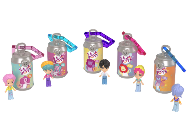 Polly Pocket fans can own the Saja Boys 5-Pack set that includes all five members, five soda cap capsules, and five keychain clips.