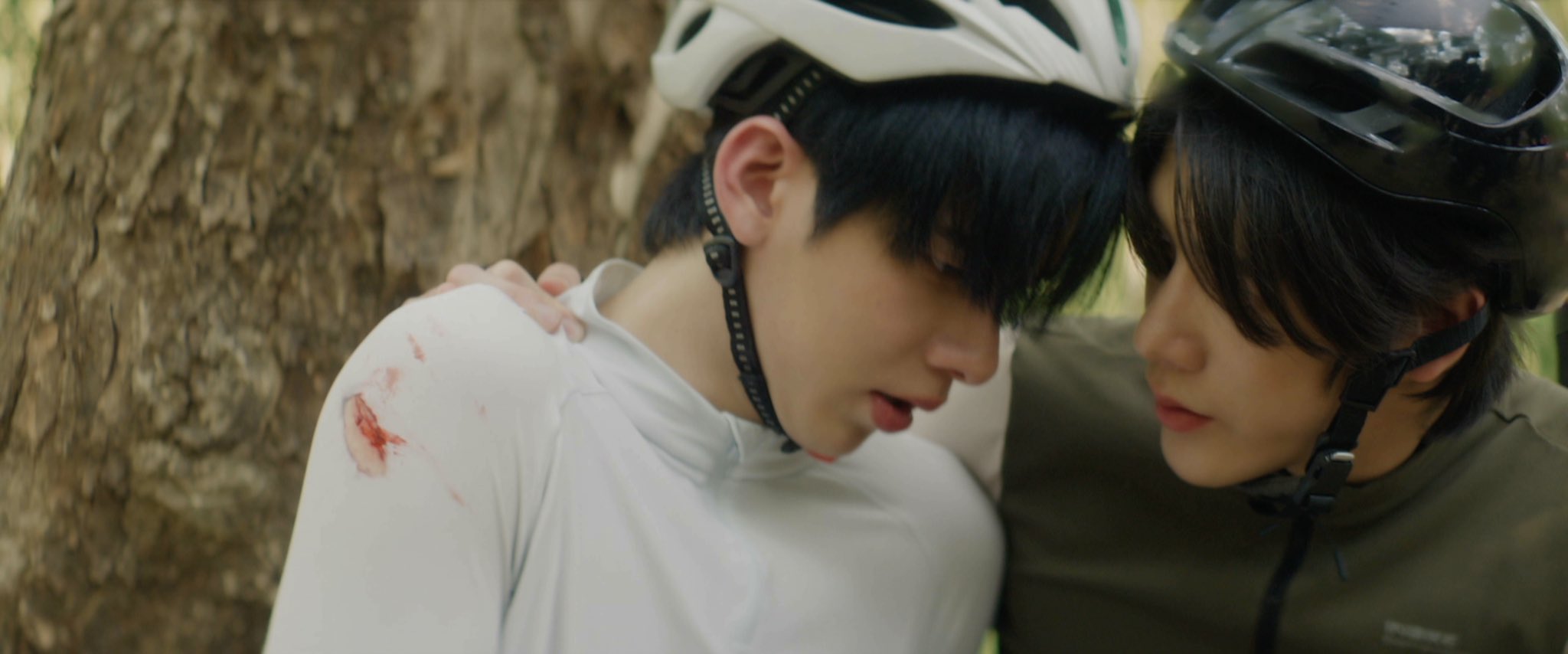 While Ramil and Paytai are out on a bike ride through the forest, someone starts shooting at them. They ditch their bikes and make a run on foot, which I think doesn’t make any sense, but I’ve never been shot at before. Maybe that’s what you’re supposed to do. Anyway, Paytai does his best to protect Ramil from the gunman and is shot in the process. Luckily, he’s just grazed by the bullet.